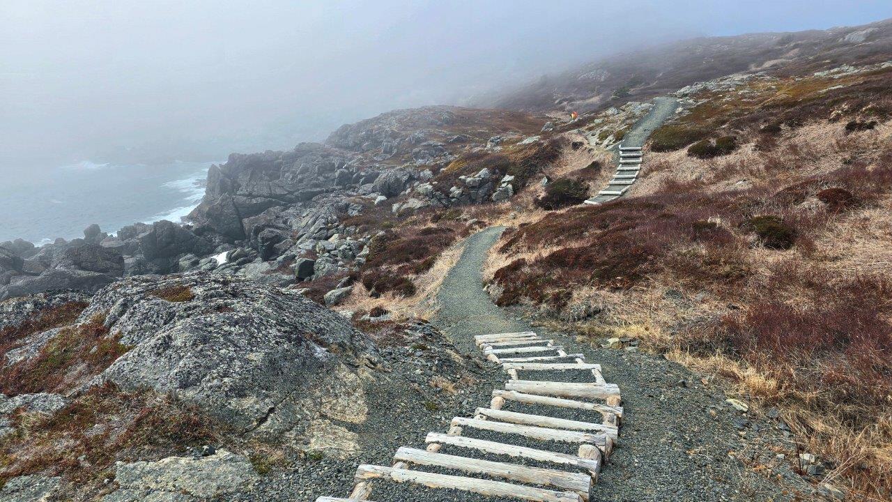 St.Anthony greeted us with a spooky driveway and foggy weather. Therefore, the popular Fishing Point viewpoint did not provide the views we and other visitors expected. The entire bay was covered in fog. Only St. Anthony down there was sunny. But the trail in the vicinity was still enjoyable. The amazing subarctic nature and rugged coastline created a magical feeling. So, the icebergs were not visible. But we learned from the info boards that the icebergs that appear in this area have been on their way from Greenland for one to two years. Parking is quite comfortable; only daily parking is allowed.